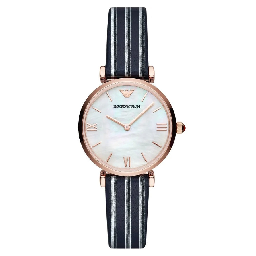 Emporio Armani AR11224 Case diameter: 32 mm Strap material: Leather (blue/white, glossy) Case material: Stainless...
