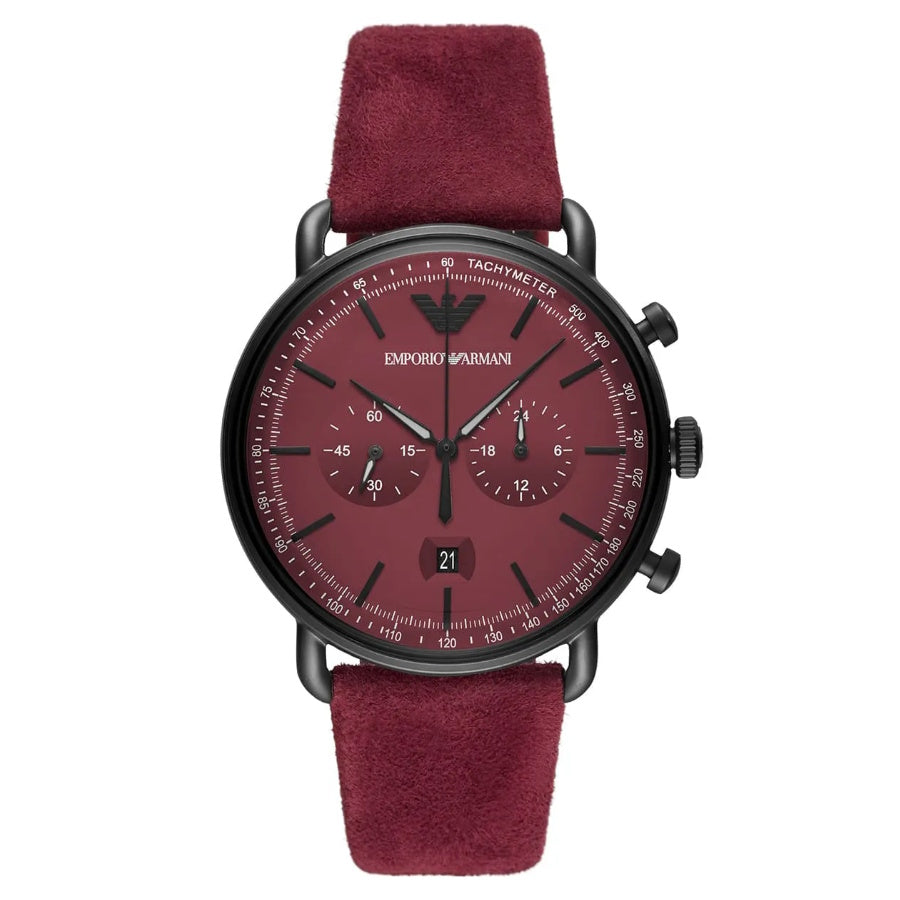 Emporio Armani AR11265 – Aviator Chronograph Case Diameter: 43 mm Strap Material: Leather (Burgundy, Velour/Suede)...